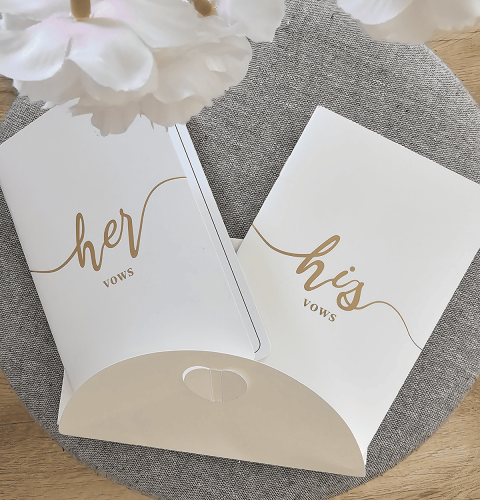 Naše ručno izrađene knjižice služe za čuvanje i čitanje zavjeta na ceremoniji.